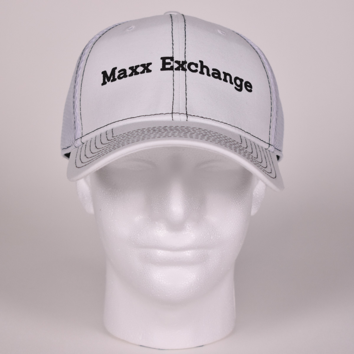 A stretch fit offers superior comfort, black contrasting stitch gives this white cap visual appeal. A breathable Maxx Exchange classic!