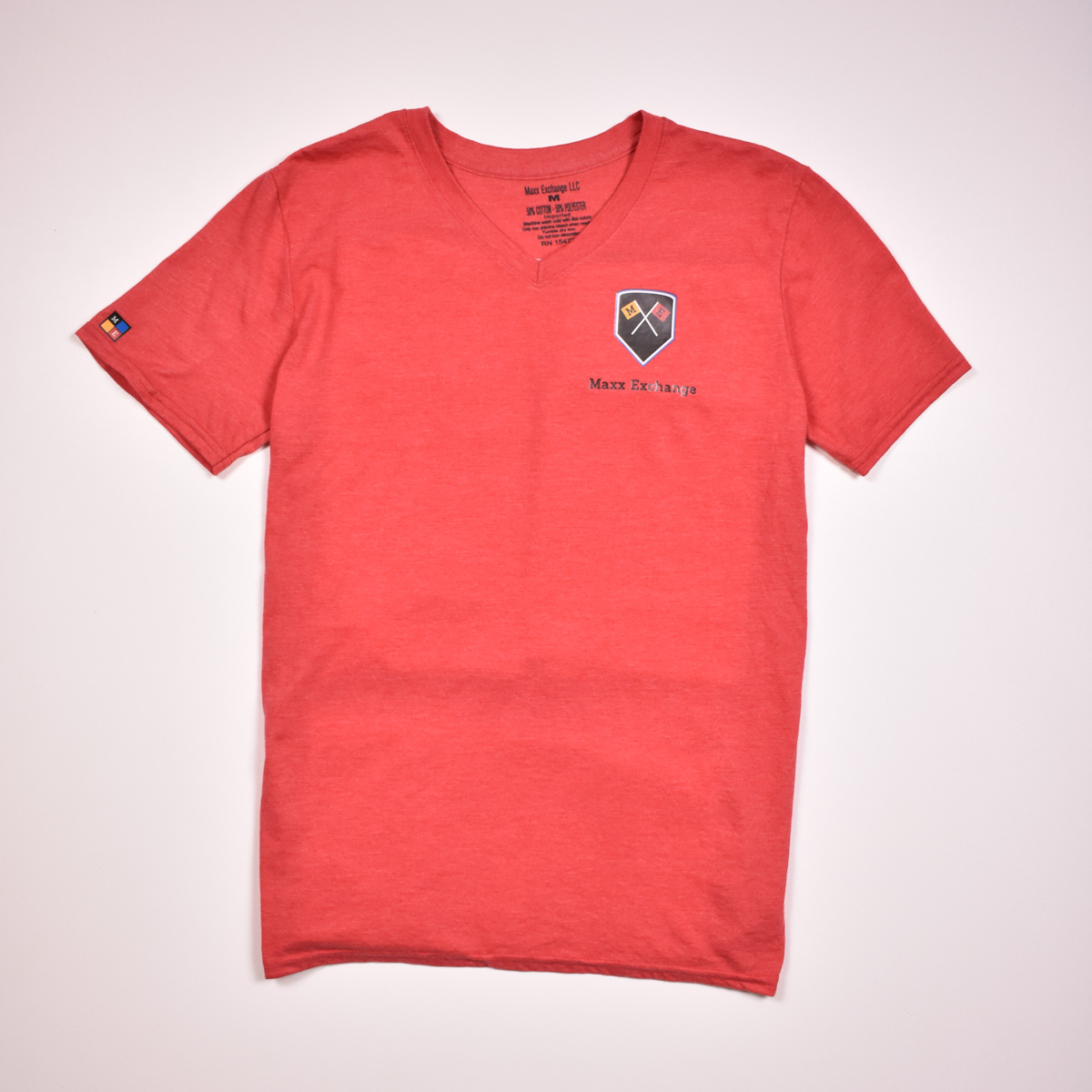 Do you desire some practical threads?  We've got what you're looking for.  Put on a Tri-blend V- neck in heather red by Maxx Exchange.